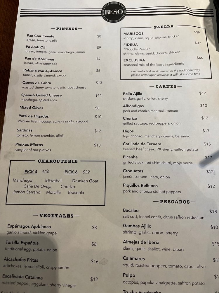 Located in Sarasota, FL, Beso offers a trendy and upscale Spanish tapas experience. With a variety of dishes like Rebujito, Rojo Sabroso, Spanish G&T, and Suerte, Beso provides a flavorful and authentic taste of Spanish cuisine. Customers have raved about the delicious paella, octopus, and mariscos paella, highlighting the fresh seafood and well-seasoned dishes. The intimate setting, attentive service, and knowledgeable staff add to the overall dining experience. Whether for a special occasion or a casual meal with friends, Beso provides a sophisticated and pleasant atmosphere for all. The exquisite decor and themed ambiance create a memorable dining experience. With great vibes, delicious food, and exceptional service, Beso is a must-visit restaurant for Spanish tapas lovers in Sarasota.